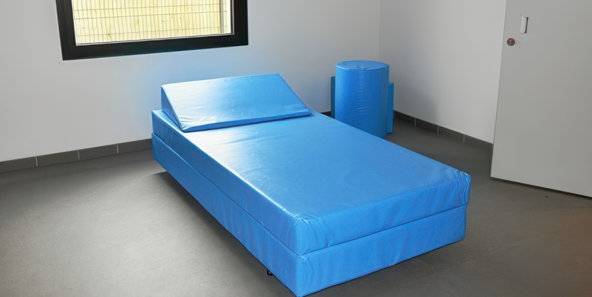 Les lits mousse empêchent de se blesser pour le patient et les équipes. Les mousses ont une forte densité afin de résister aux périodes de violence.